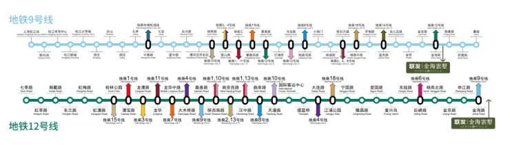 项目坐拥9号线与12号线双轨交汇,9站速达陆家嘴,2站金桥核心。未来21号线开通后,更可4站至张家浜、6站至张江。金海路高架、外环高速等城市主干道环绕,自驾通达全城。