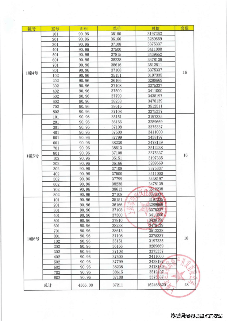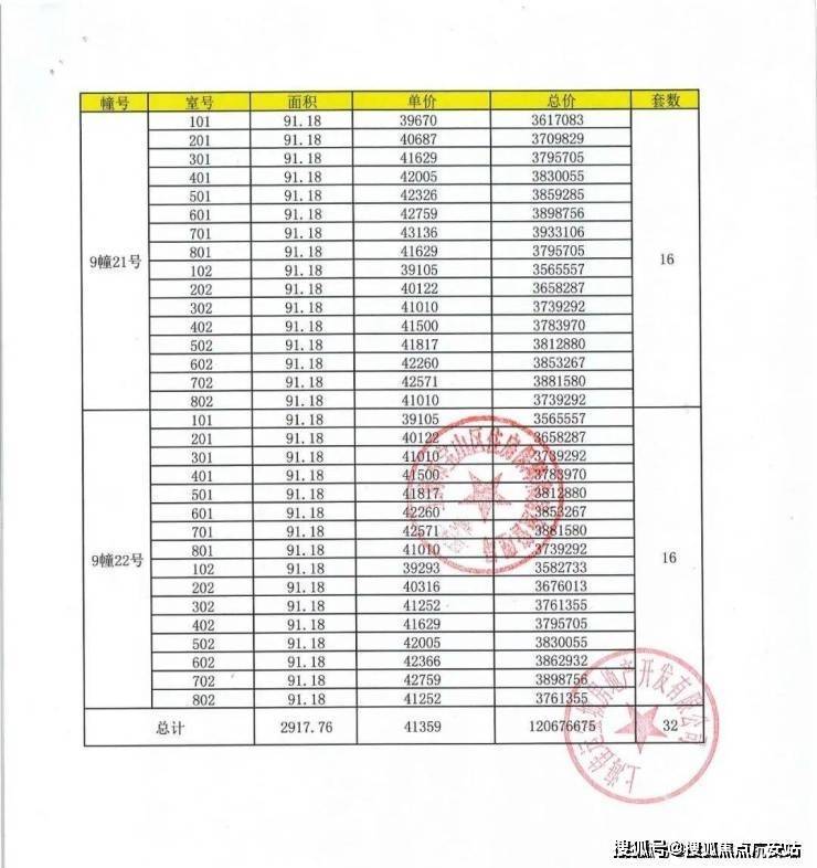 上期一房一价表: