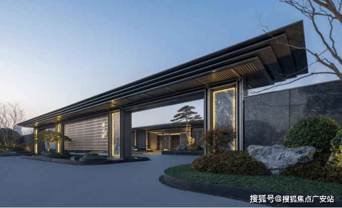 南侧主入口采用重檐门庭、金属格栅、意趣昆石,搭配约 70万珍稀古树,还原宋画深宅大院的威仪。约57米恢弘尺度,媲美南京总统府门庭气度