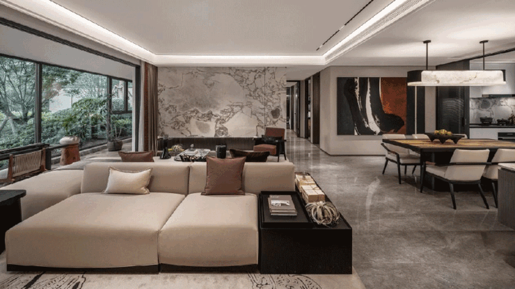 采用"三进四院"东方园林布局,移植价值70万元的黄山造型油松,打造1600㎡水系景观。社区内设首层架空泛会所,包含下沉式健身房和私宴厅
