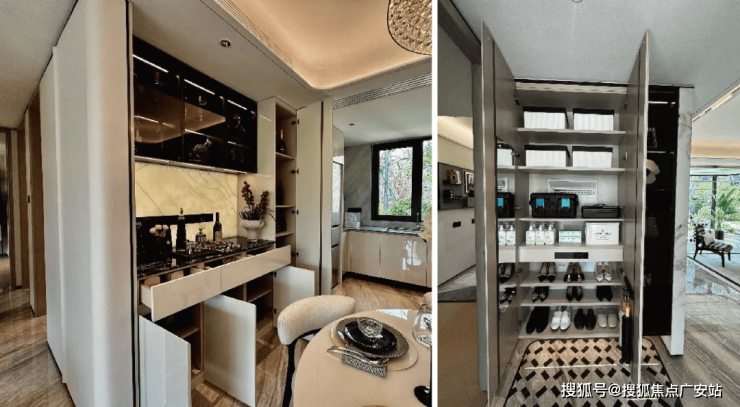 ④加载五金升级、调味拉篮、锅具拉篮,800碗碟三层拉篮,餐厅零食拉篮柜等;容量节省了约250L,相当于5.7个20寸登机箱,极致的收纳。