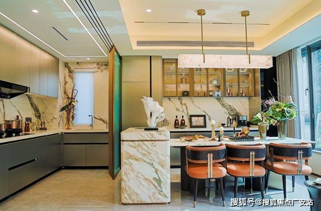 中厨可做独立空间,也可以完全敞开,与西厨餐厅相连,整个空间打开,更加宽敞。