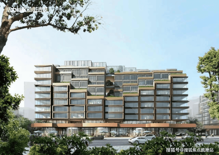 外立面方面,项目整体将打造为新海派建筑地标,设计有弧线阳台、45度玻璃、双层塔冠等,设计灵感来源于蔓楼兰;立面色调方面,将采用珐琅彩色调,具体或为珍珠蓝铝板+红色纹理+金色线条,具体材料及配色还在最终确认。