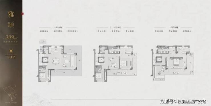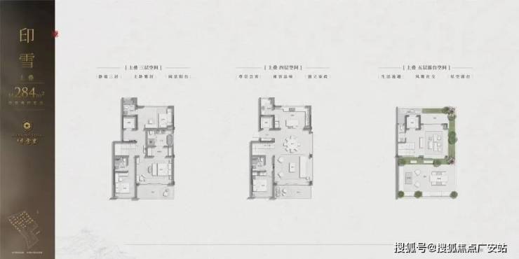 在春颂香雪里的示范区设计中,“如入宋画”是空间组织概念的内核。LEAP设计团队以此为灵感,通过不同高度和层级的划分优化空间视觉序列,使步行者与庭院景观建立俯视、仰望、远眺及非直线透视等多样化互动,引导游览行进并创造空间流动性,将传统山水画论的核心构图理论“三远法”运用于现实。