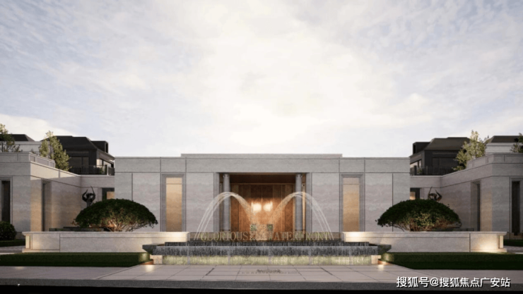 社区南门:约36米奢阔尺度,传承自凡尔赛宫的三泉林,对称仪制带来尊崇感,同时确保归家时人车分流,在保证安全的前提下,更带来从城市回归家园的心境转换。