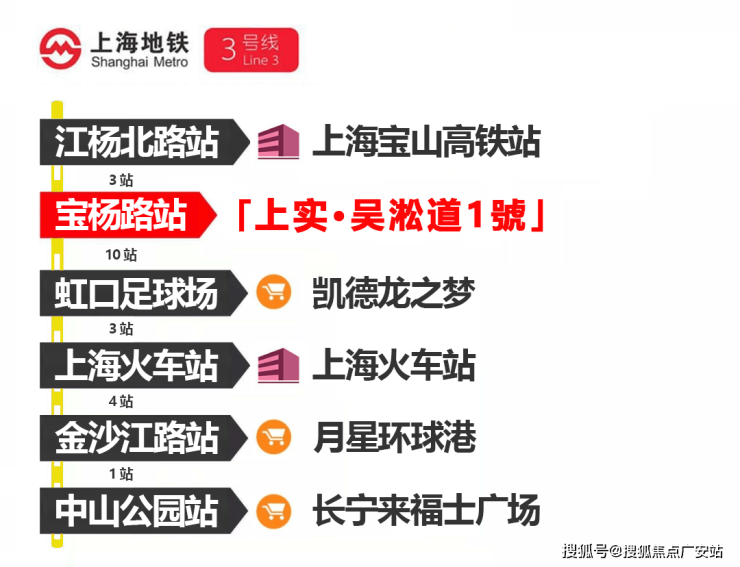 上实·吴淞道1號紧邻地铁3号线宝杨路站,直线距离3轨交汇的上海北部门户级枢纽宝山站仅约3公里!