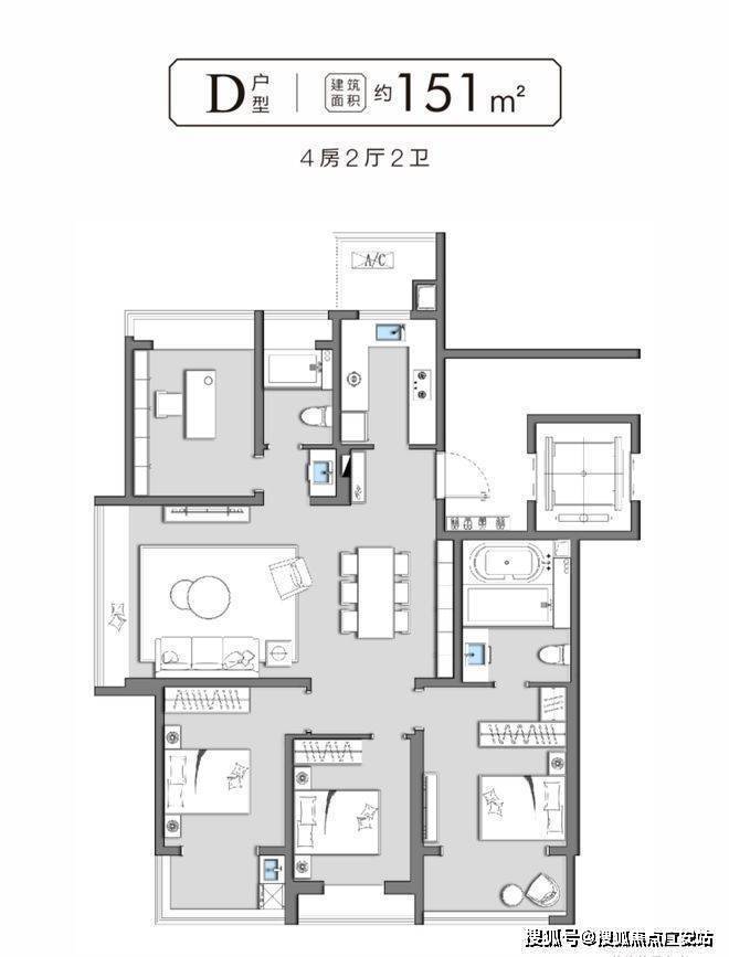 主力户型:建面约105㎡、138㎡、149㎡、151㎡的三至四房。