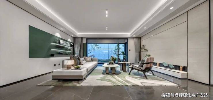 四开间朝南,南向超宽尺度,让空间底色被窗外景色点缀。