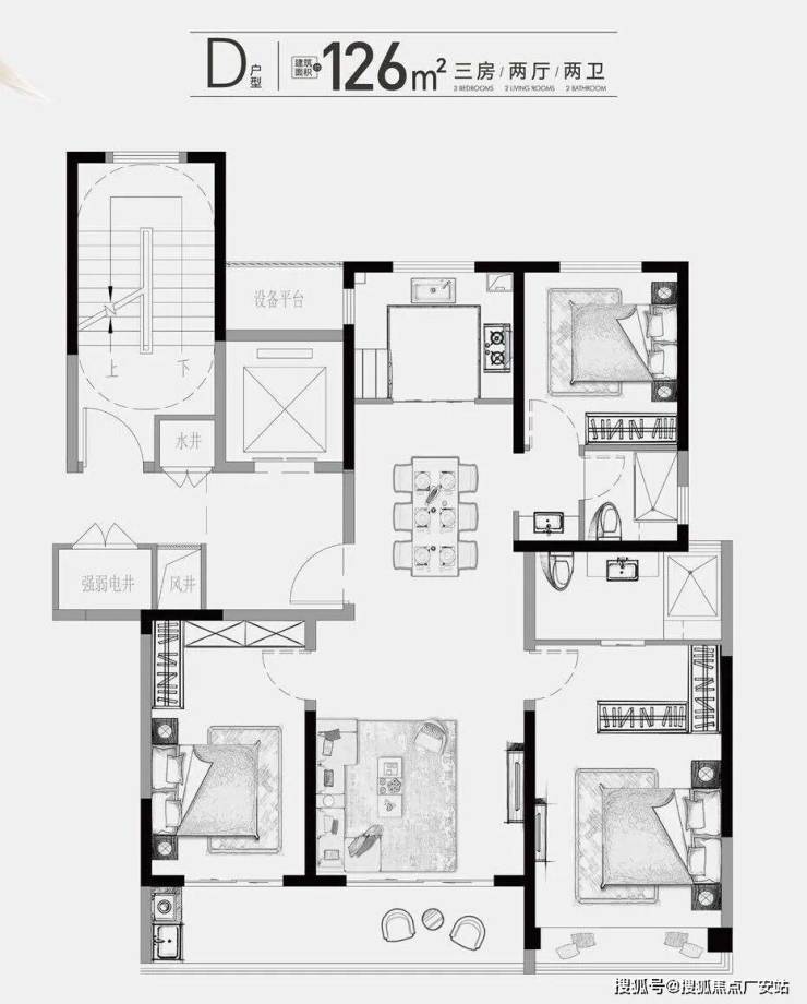 云上悦府是整个双溪湖区域内为数不多的103㎡起步改善盘,户型建面约103-126㎡,均为3房2厅2卫,保证了项目业主的圈层纯粹。