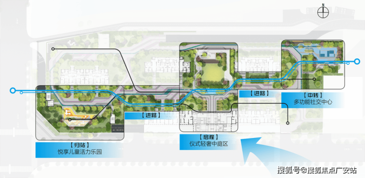 还有“三节点”的设置极具巧思。结合廊道景观轴打造的三大园林景观区,仪式轻奢中庭区、多功能社交中心、悦享儿童活力乐园,满足不同年龄段业主需求。