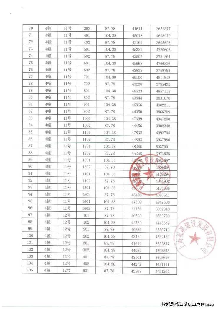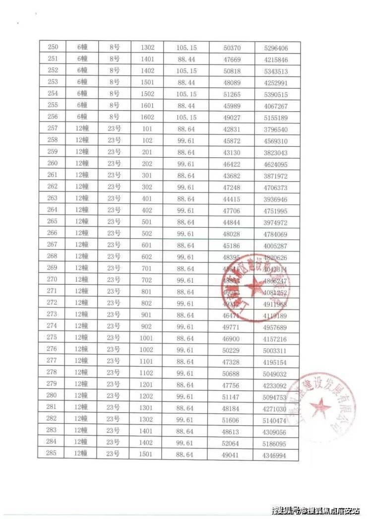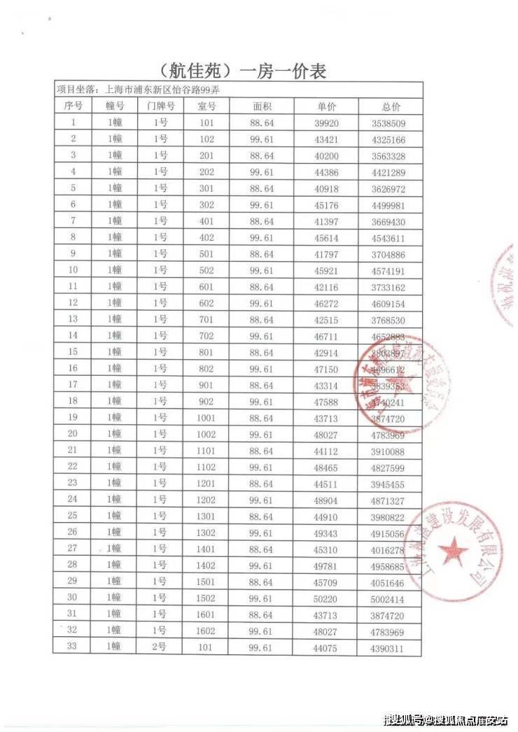上期一房一价表: