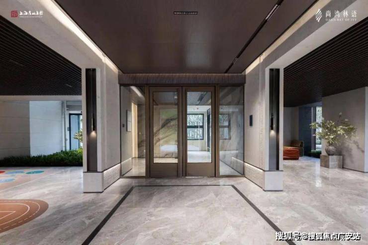 高配地下车库发光天花吊顶搭配氛围灯光,坡道穿孔顶面铝板天花、迎宾式壁灯与马蹄石运用,归家仪式感直接拉满。奢配归家电梯厅以云灰色系岩板搭配高定艺术吊顶,中央空调覆盖,优雅舒适,是归家过渡的温馨空间。