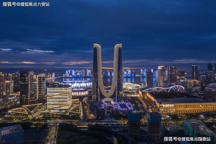 作为长三角最高双子塔和杭州第一高楼,项目总建筑面积约53万平方米,由绿地集团与宋都集团联袂打造,汇聚美国SOM建筑事务所(迪拜塔设计者)、澳大利亚伍兹贝格等全球顶尖团队,以"拱桥悬月"的建筑美学,将钱塘江潮涌的东方意境凝练于城市天际线。