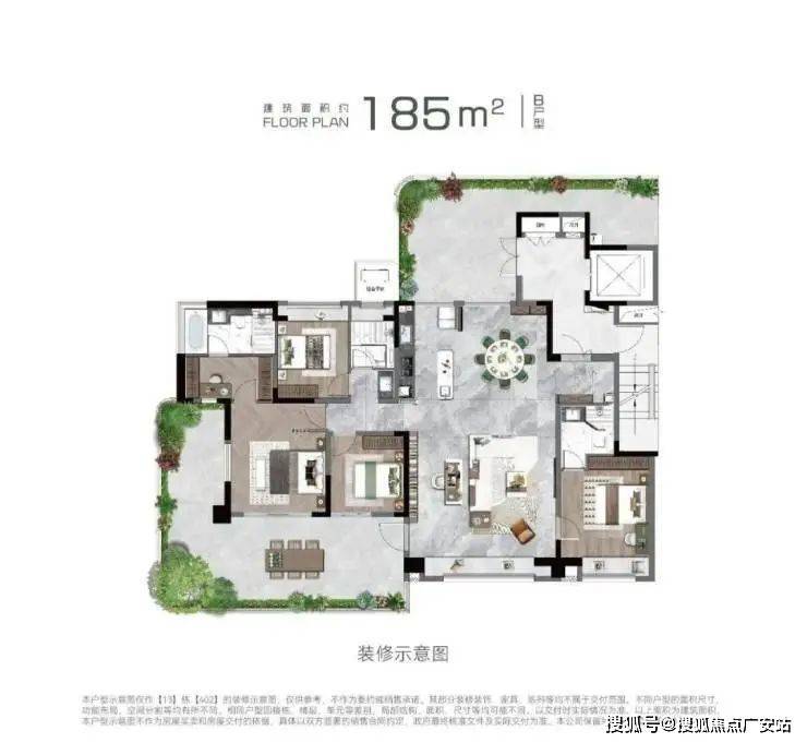 作为苏州主城首个纯四代住宅,蠡棠森屿的空中庭院设计彻底改变了传统居住模式。以185㎡户型为例: