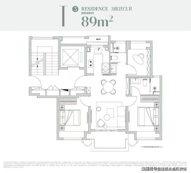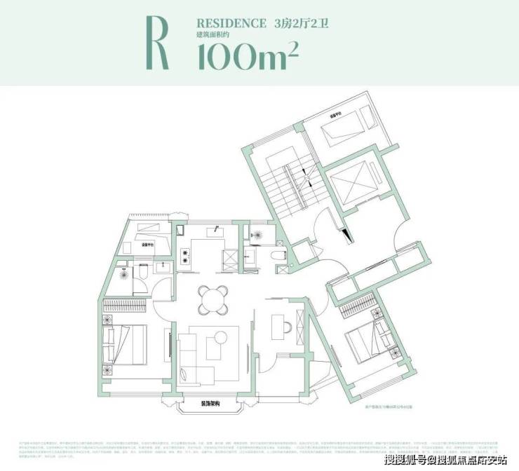 约99㎡户型设计:经典飞机户型格局!独立观景阳台!