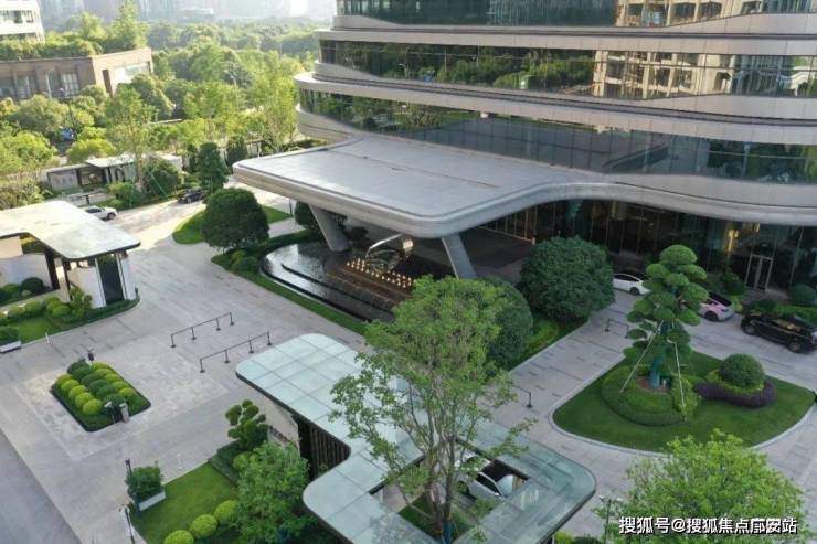 整个艺术大厅(目前的售楼处),光建面就达到了约1450㎡,设计的是通高玻璃幕墙配合约11米挑高,整体呈现的氛围感和星级酒店几乎没有差别,大气、有质感。