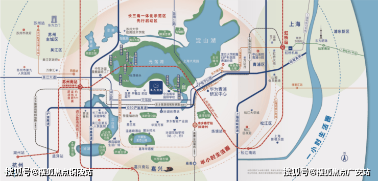 高速路网:紧邻G50沪渝高速,入口直线距离约1公里,车行40分钟直达上海虹桥枢纽。