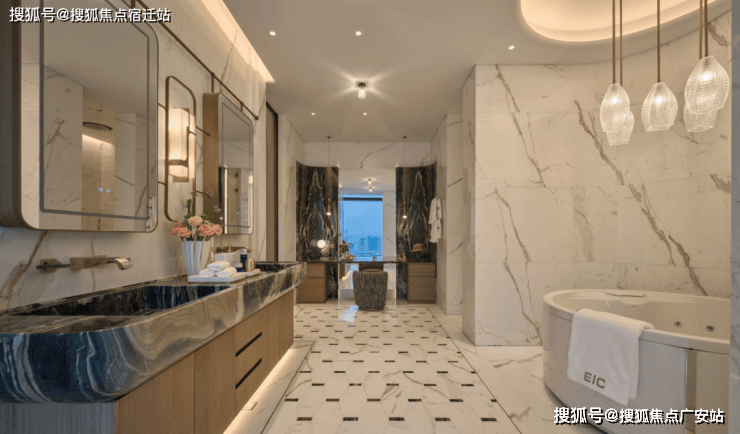 尤其主人休憩的空间,超越以往所享,约100㎡媲美迪拜七星级酒店总统套房,大按摩浴缸、大双衣帽间及贴心的美妆冰箱,平衡男主的尊享和女主的优雅。