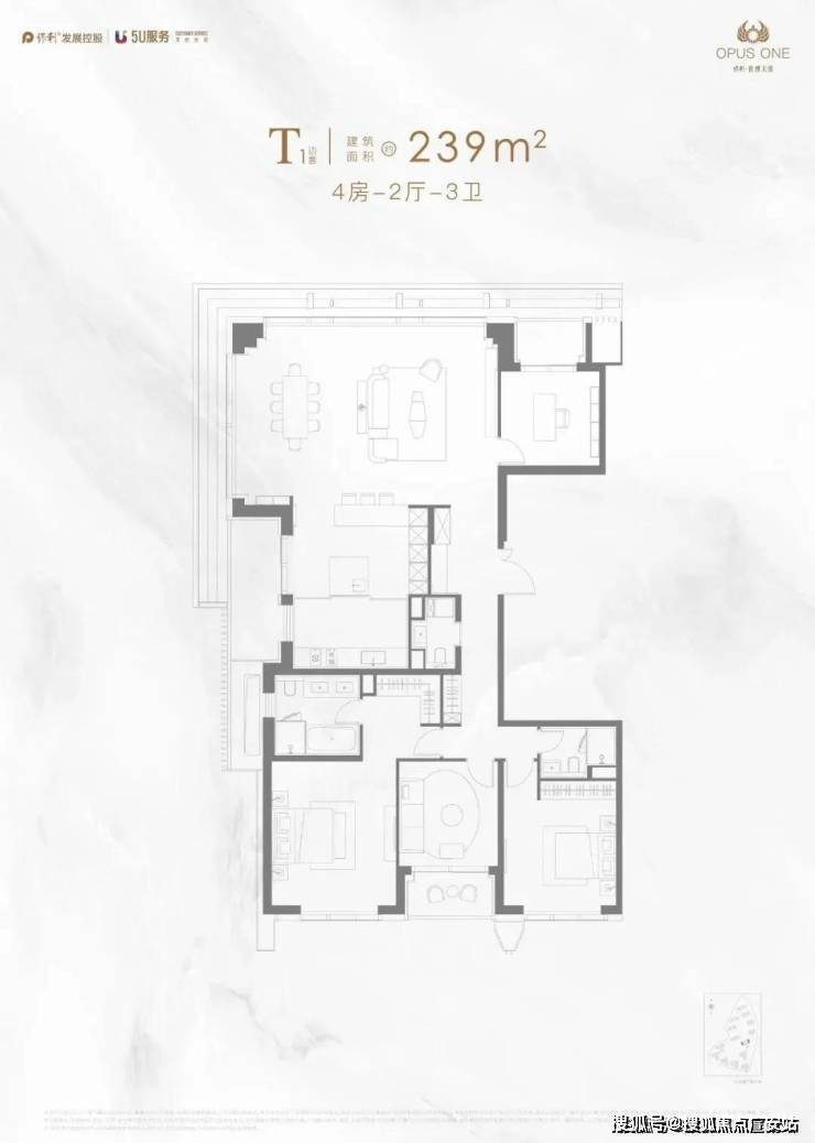 石英石台面、嘉格纳(或同档次)灶具、吸油烟机、洗碗机、冰箱、蒸汽烤箱的厨房六件套;239-251㎡户型并配有酒柜。