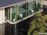 建筑风格:新亚洲风格,采用葡萄牙米黄石材干挂立面,融合传统院落格局与现代居住功能