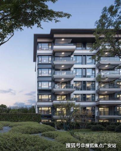 在建筑上,强调对称,突出轴线,充分传达了建筑自然、挺拔的气质。以极简的形态、“消隐”的立面设计,再配以整体平和舒缓、自然雅致的色调,呈现出不同于传统建筑的轻盈、通透质感,展现对美学的高度追求。外立面采用大面积玻璃镶嵌金属线条等现代元素,整体为银灰色系,有强烈的对称和秩序感,高级感拉满。