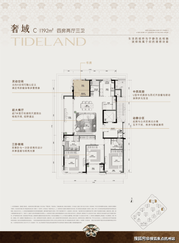 「潮语江澜府」在产品配置上实现全线跃升,其中以超大下沉式庭院为核心亮点,将景观层次与空间仪式感拉满;更值得关注的是,约160㎡起步户型配置,堪称当下主城核心区的最低准入门槛。