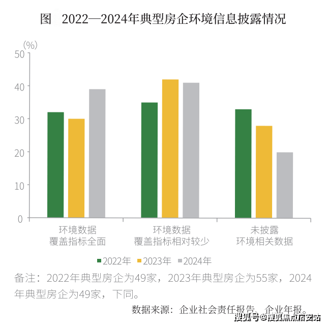 在披露指标的口径方面,房企间环境数据统计范围仍存在较大差距,无法有效体现房企经营过程中的温室气体排放总量、废弃物排放量、耗水量等信息。