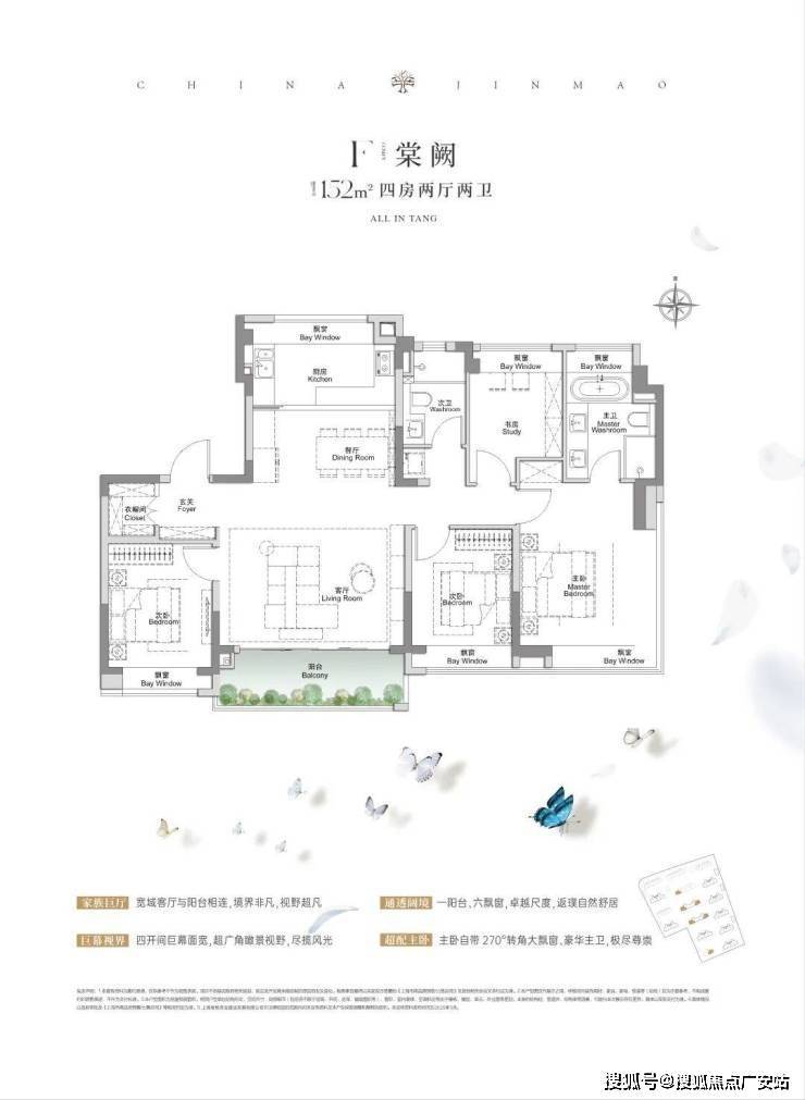 全景舱艺境美宅,标准层约3.1米层高、270度全景飘窗、LDKB一体化、南向跑道阳台、超12米南向全屏开间,无限视野尽收眼底,还有超金喜的满配精装,全上海只有央企金茂才能做得到。