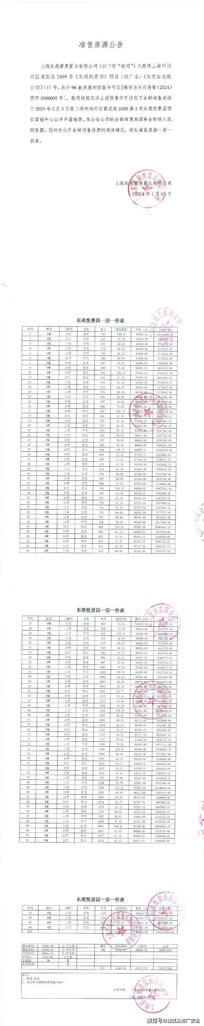 项目一房一价表▼