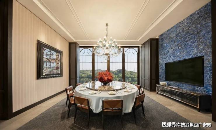 客餐厅阳台一体化,公区方正无比,视野开阔,尺度阔绰,将业主的非凡气度体现的淋漓尽致!