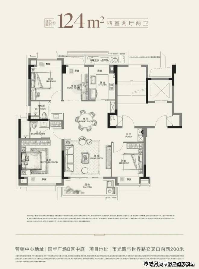 建面约124㎡的一步到位改善四房