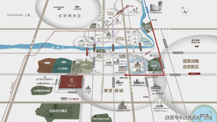 项目与老闵行直线距离仅约9公里,自驾通过浦卫公路、闵浦三桥可以直达闵行,直抵马桥人工智能未来小镇、紫竹高新区等板块。
