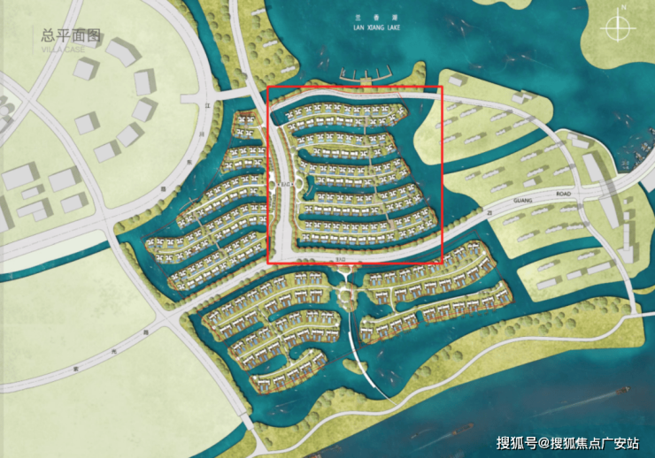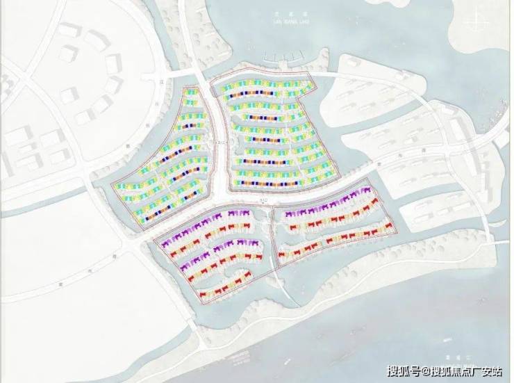 项目从此前曝光的设计方案就可以看出亮点,每一排别墅前都有一条渠道,引入水系,可以停游艇。