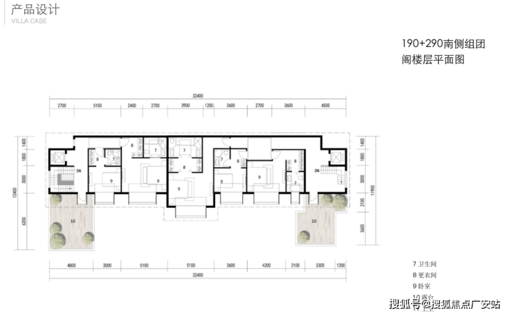 二层都是套房设计+露台+客厅挑空,190的二层是双套房、290的二层是三套房。