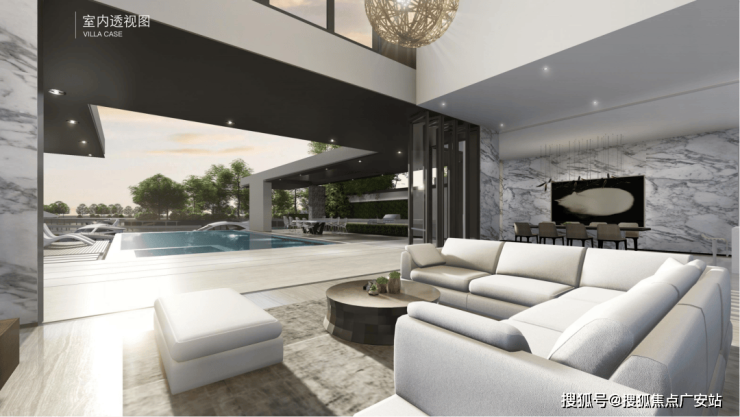 北入户的190+290房型,一层朝南直面庭院和泳池,如果配上整扇的落地玻璃移门......