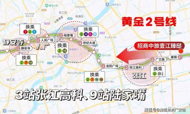 2号线烫金大动脉:2号线3站张江高科,9站陆家嘴,连缀包括嘴、南京东路、人民广场、南京西路、中山公园、天山顶级商圈,贯通4个国际商务区,南北互连两大国际机场和虹桥火车站,“奢华”程度不言而喻。