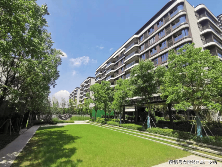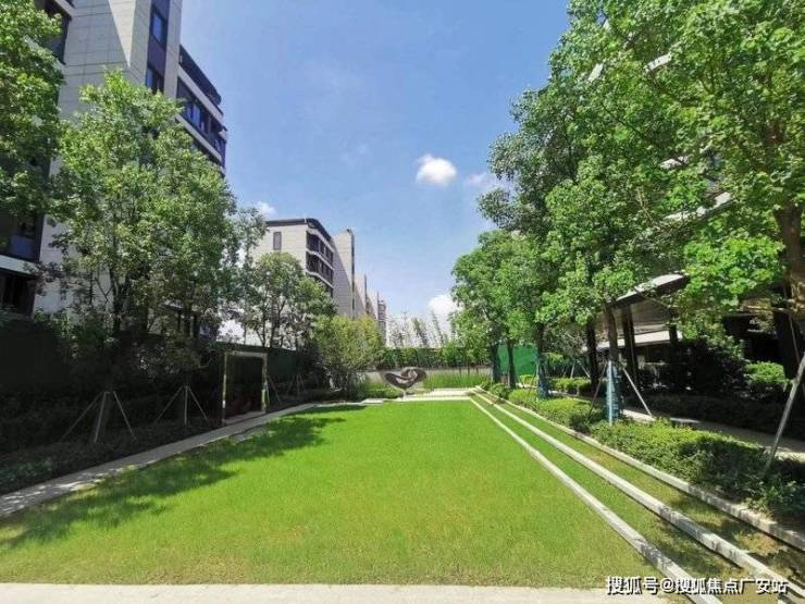 建筑风格:采用现代简约与江南园林融合的风格,浅青灰色真石漆与木纹格栅勾勒质感,楼间距最大 65 米,采光通风极佳。