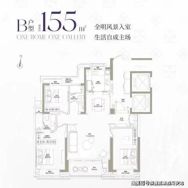 近全飘窗设计,扩展了生活的尺度感;主卧豪华套房设计,兼顾私密性与居住舒适度!