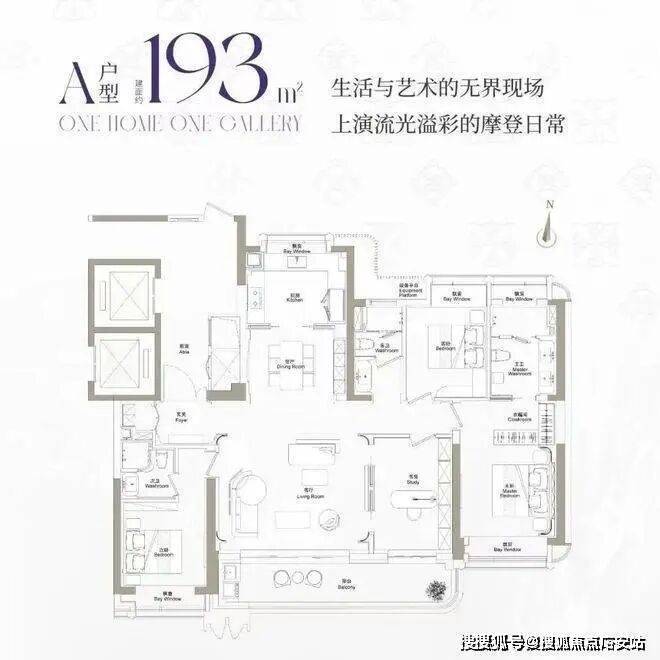 建面约193m²户型,主力总价3400万左右
