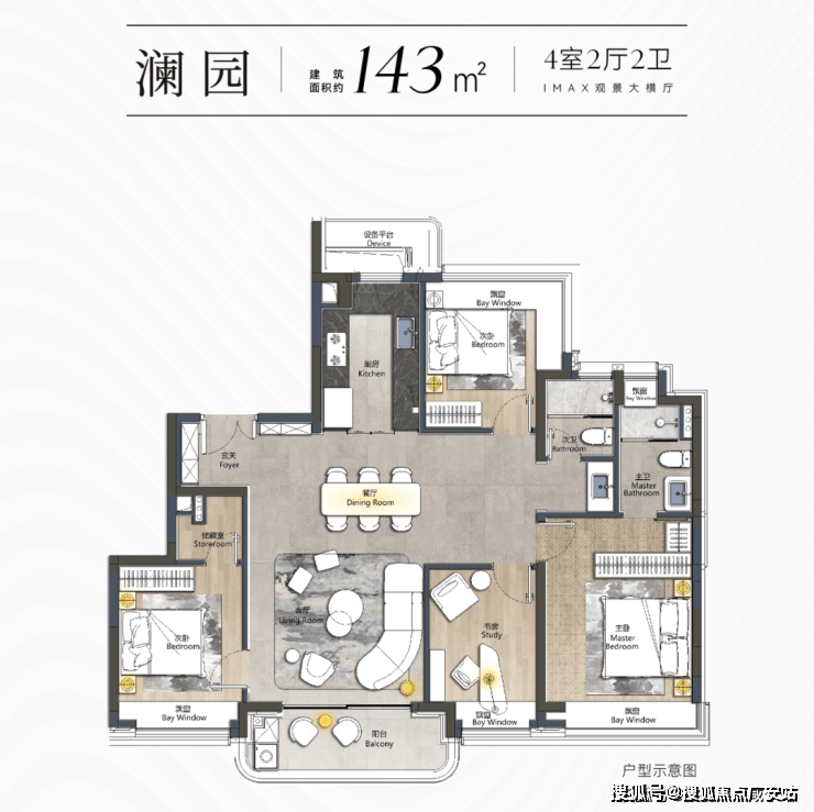 我们以已经开放样板间的建面约143㎡户型为例: