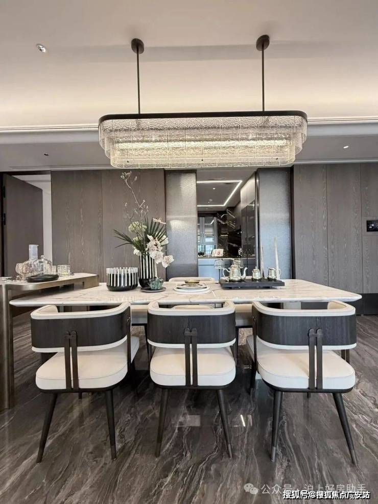 翎翠滨江通过大量的奢石、隐藏式细节将整个室内打造成了艺术的殿堂。