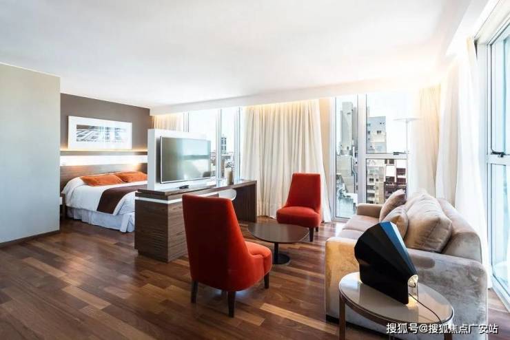 再往上的楼层构成了塔楼的主体部分,这里是酒店的客房,其特点是宽敞、采光好且能欣赏到周围环境。客房配备高档设施和一流的客人服务。作为酒店设施的补充,屋顶设有室外游泳池、设备齐全的健身房和水疗中心。