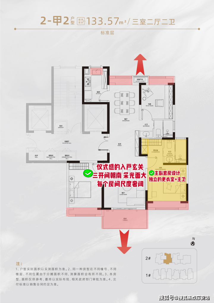 建面约133㎡户型堪称115㎡的进阶版,居住尺度一步到位!进门就是入户玄关,空间非常大,近乎有8个平方.餐客厅分离,南向超长采光面,室内视野更上一层楼!