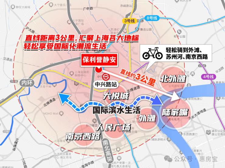 项目到外滩和平饭店的直线距离正好是约3公里!妥妥的城心烫金地段!