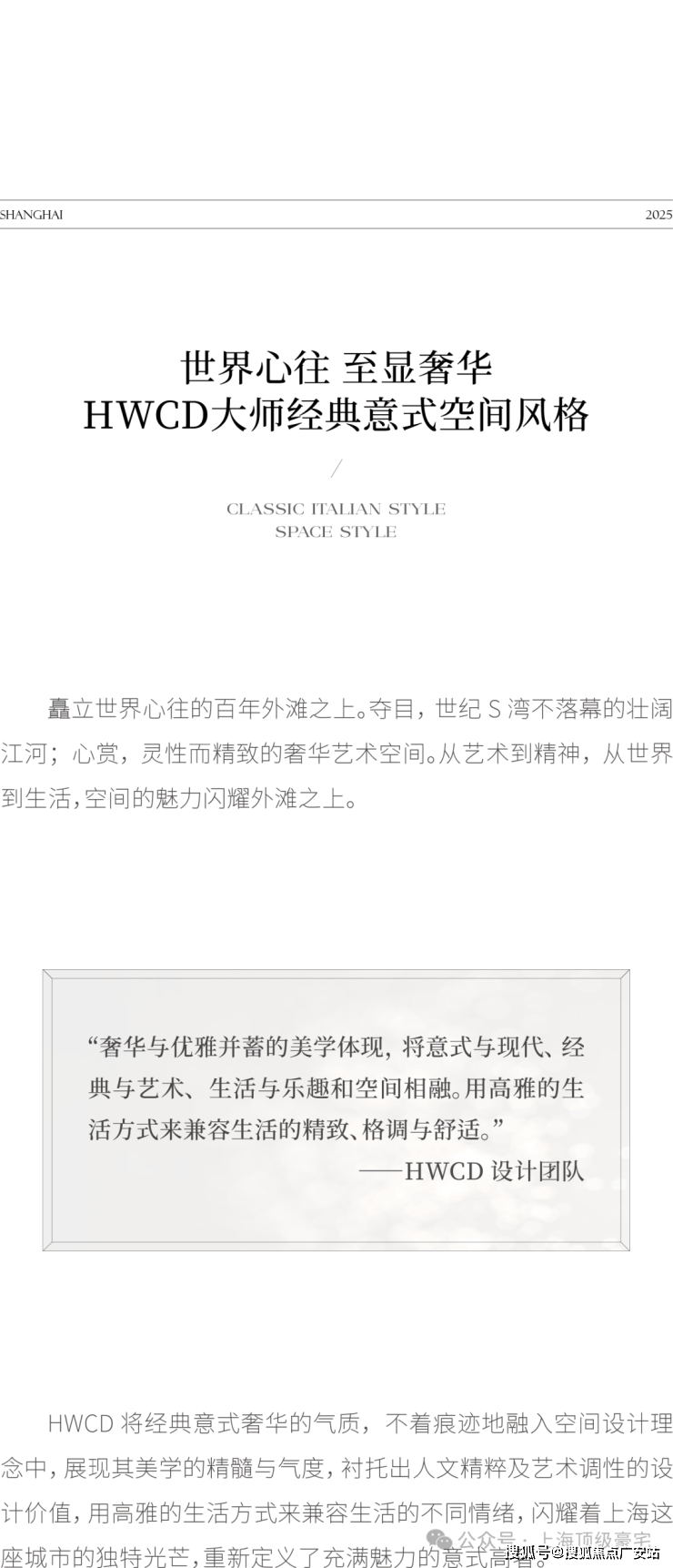 住宅部分全部大平层(复式)设计,单套面积约370-1500㎡,全部精装交付。