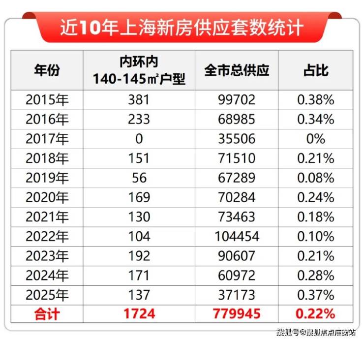 据网上房地产数据显示,近10年整个内环内每年入市的140㎡+的4房户型基本都是百余来套,占比总池子约千分之二,稀缺性可见一斑!