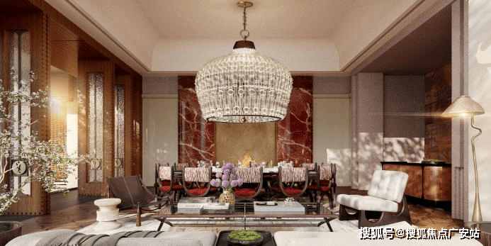 该户型虽是中间套,但因南向直面别墅区,中低区楼层采光与视野亦十分优越,可直接眺望未来的480米城市地标。