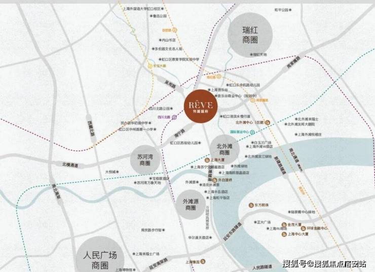 商圈叠加:南京东路-外滩商圈、人民广场商圈、苏河湾商圈、北外滩商圈、瑞虹商圈环绕叠加