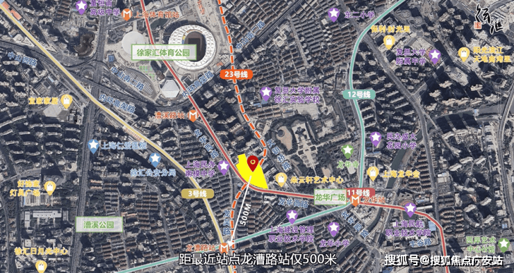 11号线和23号线地下贯穿,地块东侧还有龙华烈士陵园和龙华寺。
