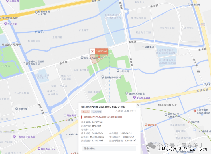7月25日,上海2025年六批次土拍中浦东唐镇地块,最终由招商蛇口&中旅投资以中止价27.297亿元+商品住宅装修标准不低于4500元/㎡(集采价)+公共服务设施200㎡(计容)+高端人才住房配建比例0.7%竞得地块,成交楼面价52360元/㎡,溢价率40.00%!